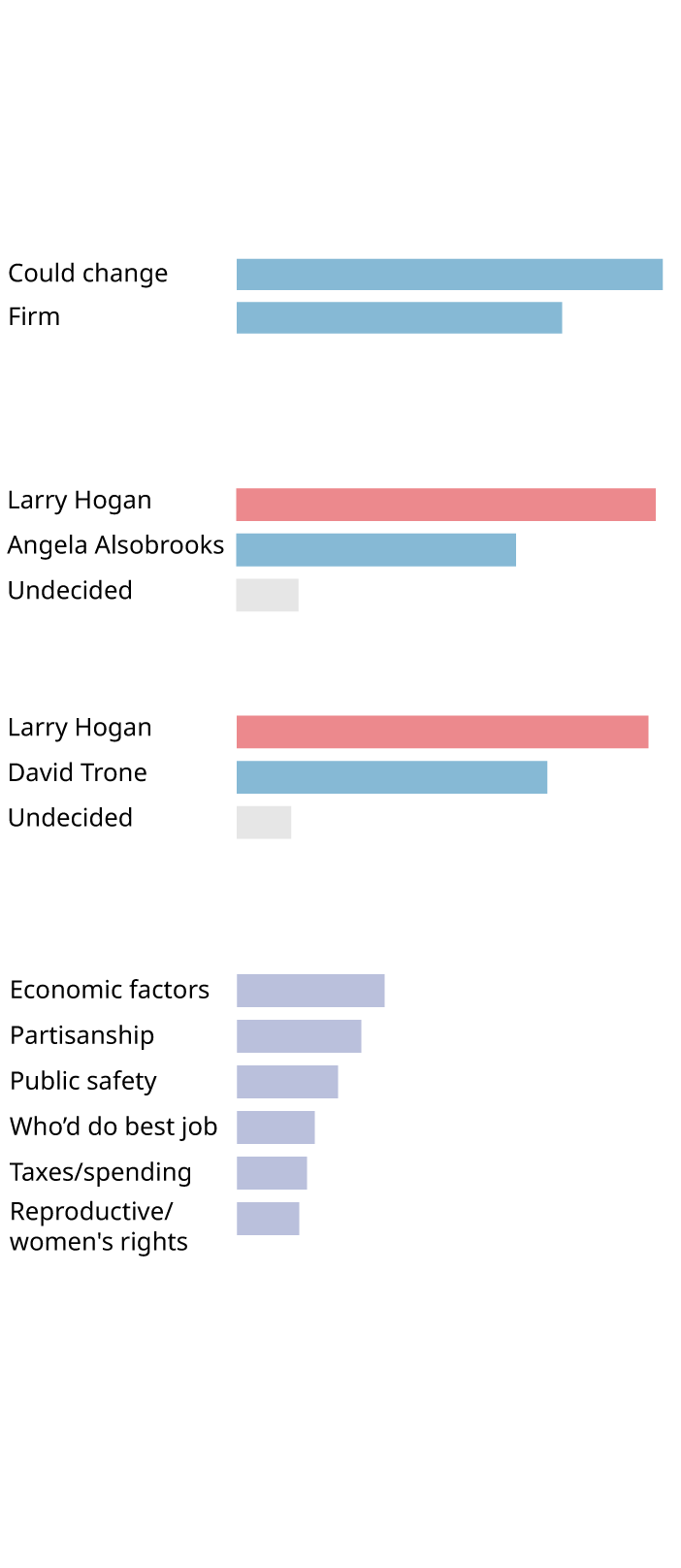 SOURCE: April 7-10 polling of 600 Democratic primary likely voters, 451 Republican primary likely voters and 241 General Election likely voters by OpinionWorks of Annapolis for The Baltimore Sun, FOX45 and University of Baltimore’s Schaefer Center for Public Policy | STAFF GRAPHIC